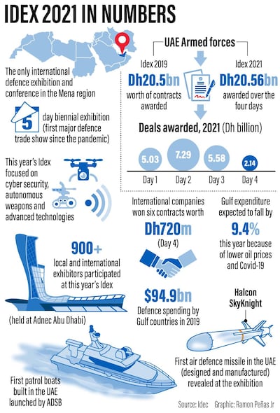 Local companies won 18 contracts worth Dh1.42bn of the 24 deals awarded by the Armed Forces, said Staff Brig Gen Mohammed Al Hassani, spokesman for Idex and the Naval Defence and Maritime Security Exhibition.