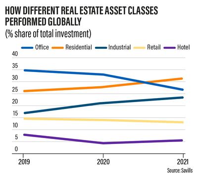 Residential and industrial property will be the strongest real estate investment asset classes globally in 2022, according to research from consultancy Savills.