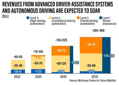 Globally, by 2035, autonomous driving could create $300 billion to $400 billion in revenue, McKinsey said in a report earlier this year.