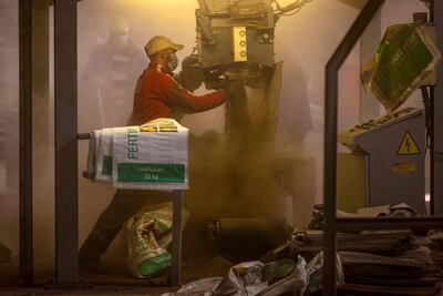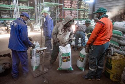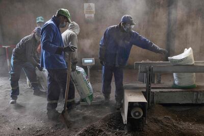 Workers fill bags with fertiliser in the Elephant Vert factory in the 'Agropolis' industrial zone in Morocco's northern city of Meknes. Recycling in Morocco may be in its infancy, but the North African kingdom is making steady progress, helped by a Swiss firm that specialises in processing organic waste.