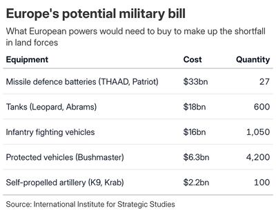 Essentially, on land the continent would need an additional three armoured divisions to cover the US absence.