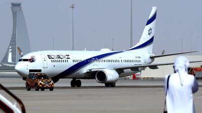 The Israeli flag carrier El Al's airliner lands at Abu Dhabi International Airport. Victor Besa / The National -